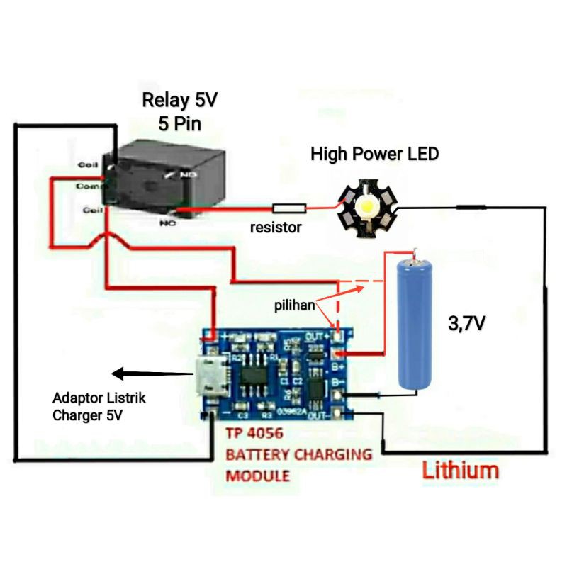 Contoh diagram rangkaian / skema lampu emergency. Membuat lampu emergency sendiri dengan lampu rumah led 5 sumber. Mau coba membuat lampu emergency sendiri?